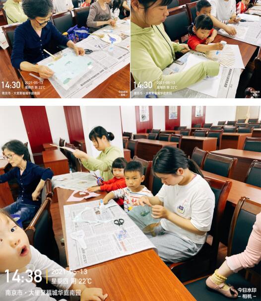 活動現(xiàn)場歡聲笑語,大家互相交流育兒經(jīng)驗(yàn),手巧的居民完成自己的作品后主動幫助旁邊的居民。