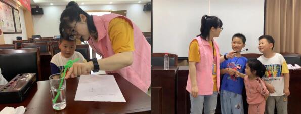 活動開始前,社區(qū)巾幗志愿者準備了杯子、吸管、打印好圖案的A4紙等教學用具,靜靜等待孩子們的到來。孩子們對“會變戲法的水”都表示很感興趣,紛紛前往家長學校參與活動。“左邊是裝滿水的杯子,右邊是空杯子,請小朋友們仔細觀察,透過兩個不同的杯子你看到的東西有什么不一樣呢?”志愿者給孩子們演示著“戲法”。“我看到吸管被折斷了!”一位孩子大聲地說道。“很好,你說得很對。那么,大家知道為什么吸管看起來被折斷了嗎?”志愿者再問道,孩子們紛紛搖了搖頭。原來,光在不同介質中傳播的速度不同,介質的疏密也不同,我們肉眼看到的是吸管發(fā)出的光。那束光在水和空氣的界面上發(fā)生了偏移,所以我們看到的吸管是“折斷”的。隨后,志愿者又給孩子們演示了水變成水蒸氣的過程,告訴大家其中的物理原理。孩子們表示非常有趣,以后還要多多參加活動,學習更多的知識。