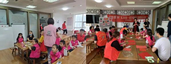 活動(dòng)開(kāi)始前,社區(qū)工作人員和社區(qū)志愿?jìng)冊(cè)缭缇蛠?lái)到了活動(dòng)場(chǎng)地進(jìn)行場(chǎng)地布置,志愿者首先給大家講了中國(guó)傳統(tǒng)文化剪紙的由來(lái)和剪紙的發(fā)展過(guò)程,之后社區(qū)志愿者給每組家庭派發(fā)了剪紙材料和繪畫工具。整個(gè)活動(dòng)場(chǎng)面熱鬧、溫馨,其樂(lè)融融,孩子們和家長(zhǎng)一起動(dòng)手操作,桌子上擺滿了各種剪紙的材料、工具以及剪好的成品、半成品,孩子和家長(zhǎng)們一邊熱烈討論著剪紙的技巧方法,一邊用自己靈巧的雙手,親子之間的親密合作,制作了一件件精彩紛呈的作品。