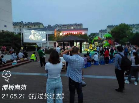 一部經(jīng)典電影就是一堂生動精彩的黨課。為了進一步引導(dǎo)廣大社區(qū)居民做到學(xué)史明理、學(xué)史增信、學(xué)史崇德、學(xué)史力行,豐富居民在社區(qū)的精神文化生活,5月21日,南京市江寧區(qū)淳化街道橋頭社區(qū)在廣場上搭起了銀幕,邀請居民露天觀看紅色電影。