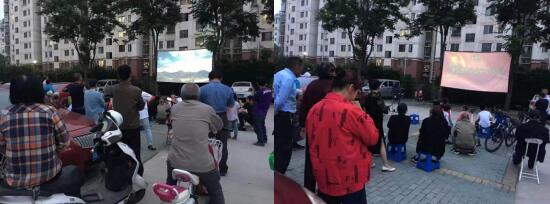 為了將黨史學習教育深入開展,深入民心。5月21日晚夜幕剛剛降臨,江寧區(qū)東山街道邵圣社區(qū)金竹花園內(nèi)人頭攢動、熱鬧非凡。工作人員正在擺弄碩大的銀幕準備試機、調(diào)試音響。居民們?nèi)蝗?、倆一伙,陸續(xù)來到廣場,有的居民還把孩子帶來一塊兒觀看露天電影。