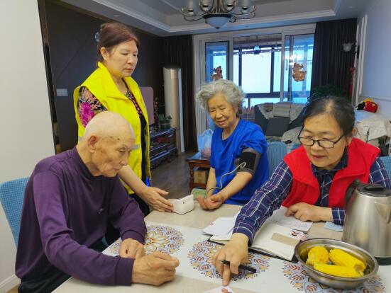 時(shí)間銀行志愿兩兩一組入戶為轄區(qū)高齡、空巢、獨(dú)居老人測(cè)血糖、量血壓、便民理發(fā)、安全檢查及安全用藥知識(shí)普及。因天氣變化多端,擔(dān)心老人的身體健康,時(shí)間銀行志愿者朱阿姨和她的小伙伴一大早就帶著血壓計(jì)上門探望高齡老人,為老人測(cè)量血壓,血壓異常的老人給予合理的建議。