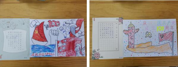 隨后在社工的帶領(lǐng)下,小朋友們共同誦讀毛澤東同志的《七律·長征》,童聲陣陣,致敬紅軍先輩。小朋友們以《七律·長征》為內(nèi)容,認(rèn)真手書硬筆書法,并以“慶祝中國共產(chǎn)黨成立100周年”為主題創(chuàng)作書畫。