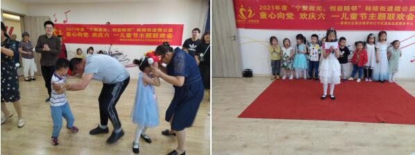 早早的,小朋友就由家長領著,陸陸續(xù)續(xù)來到社區(qū)新時代文明實踐站,在東南大學生志愿者們的引導下,測體溫、簽到。小朋友驚喜的看到有志愿者給小朋友現(xiàn)場制作棉花糖。小朋友手拿棉花糖,由志愿者帶領著排隊到活動室做熱身自我介紹。今天的活動分三部分,第一場是“頂娃娃”游戲:在志愿者們的帶領下,親子家庭頭碰頭頂著一個布娃娃,學螃蟹走,橫著從起點走到終點。家長小朋友手牽手,頭碰頭,一組組開心愉悅的走過,現(xiàn)場一片歡聲笑語,熱鬧非凡;接下來,志愿者又帶著小朋友來到猜謎語區(qū)域,邀請小朋友比試猜謎語。小朋友在家長和志愿者的一點一點的提示下,終于猜對了,拿到獎品后,小朋友開心不已;10點左右,信心滿滿的小朋友們都圍坐在觀眾席等待著今天的精彩部分--六·一兒童節(jié)節(jié)目大匯演。在主持人的報幕聲中,首先出場的是朗誦《世上的孩子有多少》的小朋友們,個個打扮的美美,在臺上聲情并茂的朗誦著,每一字每一句都誦出了兒童們的朝氣蓬勃。接下來的合唱《聽我說聲謝謝您》小朋友們長出了對社區(qū)、志愿者們的感恩之情。接下來舞蹈《咖喱咖喱》、英文歌曲《WALKING WALKING》、《器械操》,還有朗誦《做最好的自己》等等,伴隨著優(yōu)美的音樂節(jié)奏,孩子們一起邊唱邊舞,一個個節(jié)目,精彩無比,美輪美奐,讓人目不暇接,臺下喝彩聲、掌聲不斷。最后隨著《童心向黨》的音樂,把整個今天的活動推向一個高潮。
