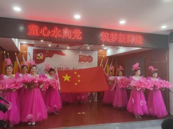演出在《祝福祖國》的開場舞中拉開了序幕,來自育德婦女微家的志愿者們一展舞姿,引得在場黨員和孩子們連連鼓掌。