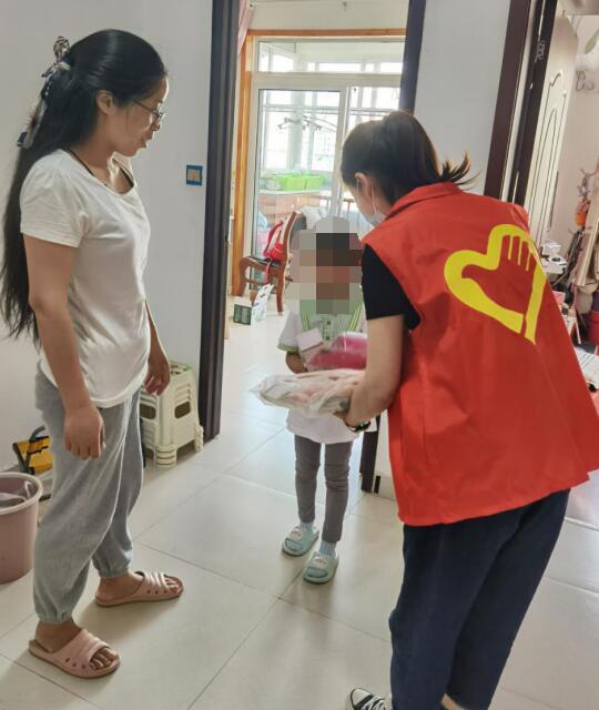 為切實(shí)做好困境兒童關(guān)愛活動(dòng),2021年6月1日下午東山街道章村社區(qū)工作人員前往困境兒童錢笑顏家中進(jìn)行走訪和慰問,將愛心傳遞到她的手中,為她送上慈善義賣籌集善款、書包、文具等慰問品。
