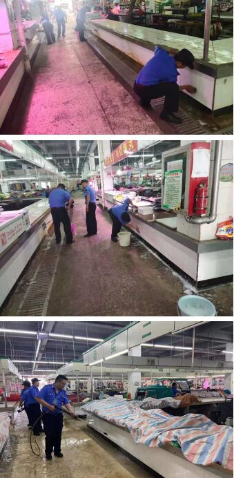 近日,執(zhí)法大隊按照“一周一清潔、一月一大掃除”的工作模式,組織人員使用掃帚、抹布、灑水車等工具對轄區(qū)內(nèi)各農(nóng)貿(mào)市場內(nèi)地面、柜面、墻壁、下水道等區(qū)域存在的污漬、雜物進(jìn)行集中清理,確保整治“全覆蓋、無死角”。天氣雖然悶熱,仍擋不住隊員們的勞動熱情,通過執(zhí)法隊員的共同努力,轄區(qū)內(nèi)農(nóng)貿(mào)市場衛(wèi)生環(huán)境煥然一新,得到了廣大居民的一致好評。