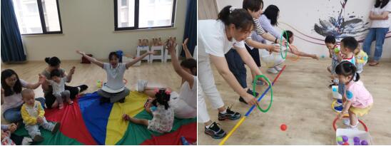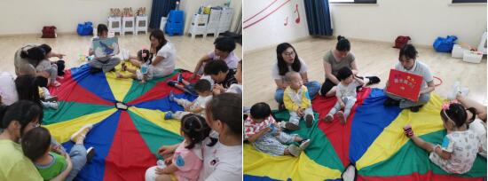 隨后,老師們帶領(lǐng)小朋友們做律動(dòng)操《小動(dòng)物做早操》,憨態(tài)可掬的動(dòng)作,瞬間萌翻了一眾家長(zhǎng)的心,讓陪同的家長(zhǎng)們?nèi)炭〔唤4∨笥褌兪煜きh(huán)境后,老師又帶領(lǐng)家長(zhǎng)和小朋友們一起參與進(jìn)來(lái),從做游戲《小雞捉蟲(chóng)》、《聽(tīng)聲辨位》、《親子投球》,到學(xué)兒歌《夏天》,精彩的互動(dòng),讓孩子們樂(lè)在其中。尤其是繪本故事《長(zhǎng)大長(zhǎng)大,老師一邊讀故事一邊生動(dòng)的表演著一邊和孩子們互動(dòng),引起家長(zhǎng)朋友的一致好評(píng),紛紛表示要向老師學(xué)習(xí)如何將繪本故事講得如此生動(dòng)。
