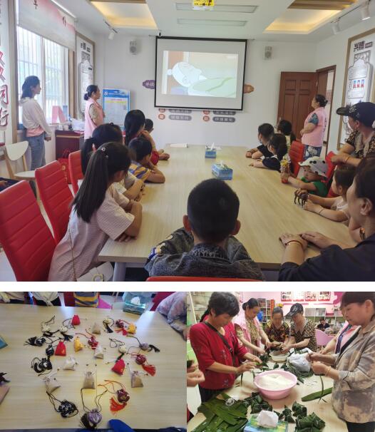 活動伊始,志愿者通過視頻講解向親子家庭傳授端午節(jié)的由來,加深他們對中國傳統(tǒng)節(jié)日文化的了解。親子家庭的大人和小孩們聽說今天可以將自己包的粽子做的香囊送去看望小區(qū)獨居老人,每個人都興奮、認真地沉浸在包粽子做香囊的“競賽”中,在大家通過近30分鐘的努力下,粽子、香囊成品都已完成。
