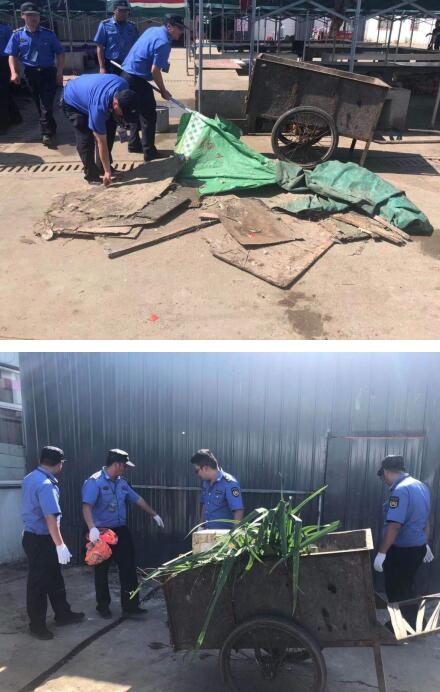 在前期農(nóng)貿(mào)市場(chǎng)整治的基礎(chǔ)上,執(zhí)法大隊(duì)聯(lián)合街道清管所,加大整治力度和頻次,對(duì)影響農(nóng)貿(mào)市場(chǎng)環(huán)境的“臟亂差”進(jìn)行“對(duì)癥下藥”。針對(duì)環(huán)境“臟”處,采取“拉網(wǎng)式”排查整治的方式,對(duì)市場(chǎng)內(nèi)過(guò)道、排水口、垃圾桶附近等區(qū)域的垃圾進(jìn)行清掃,全面清除衛(wèi)生死角、地面污水等,做到“全覆蓋、無(wú)死角”;針對(duì)秩序“亂”處,對(duì)影響市容觀瞻的占道經(jīng)營(yíng)、亂堆亂放等違章現(xiàn)象,做到發(fā)現(xiàn)一處、治理一處;針對(duì)管理“差”處,繼續(xù)采取專項(xiàng)整治和不定期“回頭看”相結(jié)合,延時(shí)執(zhí)法和錯(cuò)時(shí)執(zhí)法相結(jié)合等方式,不斷強(qiáng)化常態(tài)化巡查,建立長(zhǎng)效化管理機(jī)制,推動(dòng)管理時(shí)段無(wú)縫隙。截至目前,共整治農(nóng)貿(mào)市場(chǎng)約15次,出動(dòng)人員100余人次,整治占道經(jīng)營(yíng)、亂堆亂放、非機(jī)動(dòng)車亂停亂放等250余處,清理暴露垃圾、衛(wèi)生死角70余處,約6噸,有效改善了農(nóng)貿(mào)市場(chǎng)環(huán)境衛(wèi)生。