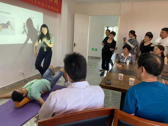 現(xiàn)場,來自江蘇省中醫(yī)藥大學(xué)的主任醫(yī)生徐力教授及其團隊成員,還為前來參加活動的居民群眾進行了中醫(yī)藥的科普講解,現(xiàn)場還通過真人演示靠墻拉伸等拉伸動作讓居民群眾學(xué)習(xí)正確拉伸筋骨,鍛煉自己身體。居民群眾們認真聆聽,不時跟隨著講解自己在座位上比劃兩下。拉伸講解結(jié)束,團隊成員還為居民群眾把脈問診,耐心詢問居民群眾的病情,仔細診斷病因,根據(jù)患者的實際情況指導(dǎo)飲食、運動以及日常防治知識,幫助大家養(yǎng)成健康的生活習(xí)慣。