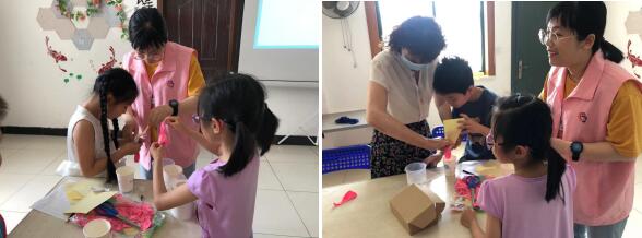 在活動上,志愿者先展示了“小蘇打與醋化學反應”的兩個小實驗,引起了小組組員們一片驚聲,特別是“物質(zhì)反應”小實驗,引起了孩子們濃厚的興趣,隨后,志愿者引導小朋友們思考背后的科學原理,在小朋友們各種猜測、體驗之后,志愿者揭曉謎底,一些小朋友恍然大悟,一些小朋友似懂非懂,但毫無疑問,這些神奇的實驗現(xiàn)象給他們留下了深刻的印象,同時也為后續(xù)的活動開展奠定了基礎。上三年級的邱姓小朋友說:“我好喜歡玩這些科學小實驗,發(fā)生的一些實驗現(xiàn)象我覺得也很有趣,我最喜歡的是‘物質(zhì)反應’那個實驗,希望以后還能夠繼續(xù)體驗。”