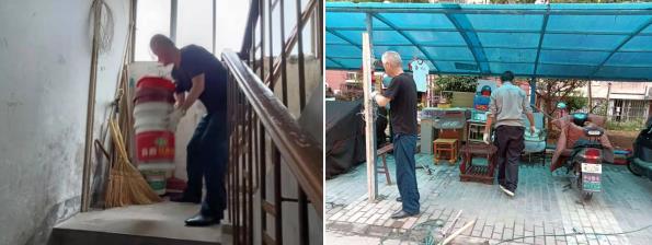 志愿者們手拿抹布與水桶,認(rèn)真清潔著小區(qū)每一棟樓每一戶的牛皮蘚小廣告、垃圾等,在大家齊心協(xié)力之下,小區(qū)入戶單元門煥然一新、扶梯污漬不見了,宣傳欄小廣告也不見了,每家每戶的門上也恢復(fù)原樣了。老舊小區(qū)變得十分干凈整潔,另外志愿者還將小區(qū)樓道堆積的垃圾、雜物進(jìn)行了清理。