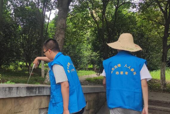 行動中,志愿者穿著藍(lán)馬甲來到花港北路土城頭一側(cè)進行巡查。志愿者們對樹叢中的垃圾和易燃物進行了認(rèn)真清理,經(jīng)過兩個多小時的巡查清理,志愿者挑出了許多煙頭、紙屑等易燃物,有效降低了森林火災(zāi)的風(fēng)險。
