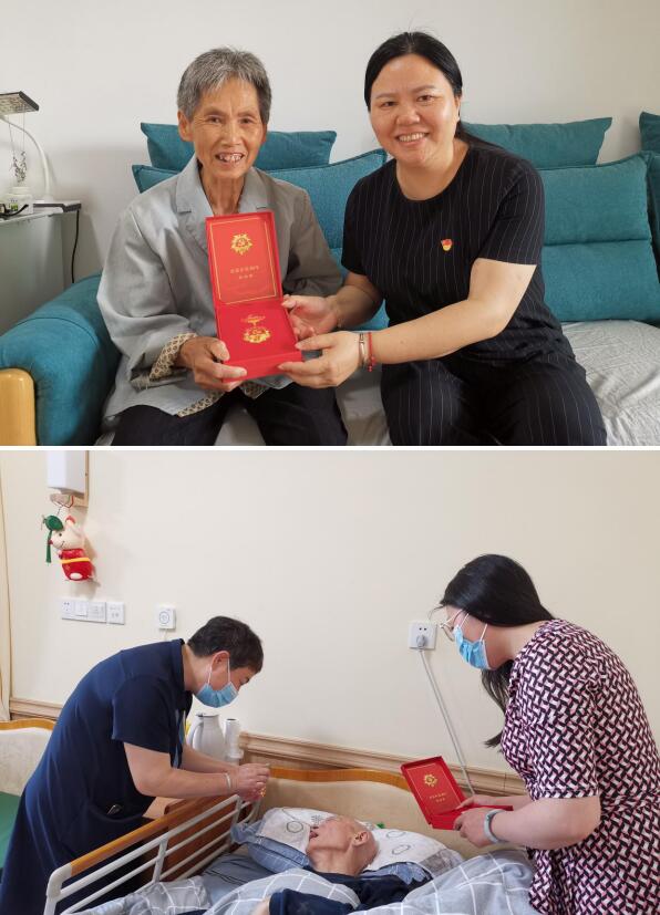那些在黨內(nèi)奉獻(xiàn)一生的老黨員都已垂垂老矣,有些在病床前接受紀(jì)念章,有的站不起來。無論是身體健康還是纏綿病榻,他們都感激于共產(chǎn)黨的培育,自豪于光榮在黨50年的經(jīng)歷。老黨員王連生長期臥床不起,有輕微意識(shí),平日里靠打流食保持營養(yǎng)、維持生命,當(dāng)老人所在的第三黨支部書記和黨委委員走到他的床前,告訴他這是國家頒發(fā)“光榮在黨50年”紀(jì)念章,在中國共產(chǎn)黨歷史上屬首次。老人家眼角竟然流出了眼淚,嗓子里哼哼著想表達(dá)什么......在場的護(hù)工都被感動(dòng)了。