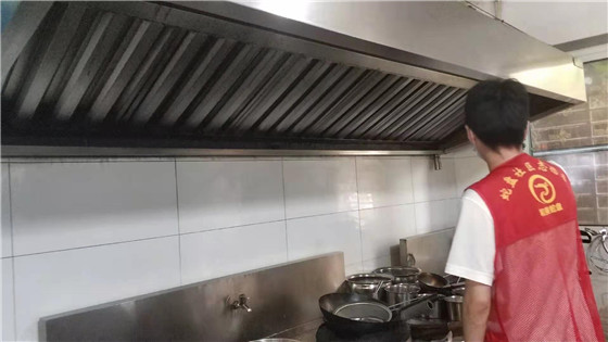 上午,社區(qū)工作人員早早來到了店鋪,店里正在備菜。我們徑直走進后廚,發(fā)現(xiàn)左側(cè)灶臺上的抽油煙機有較大油污,督促店家及時清洗。老板在前臺的柜子里翻出了我們街道發(fā)的餐飲店油煙凈化系統(tǒng)清洗臺賬來配合巡查,店鋪基本每個月能做到對油煙凈化器進行一次清洗。