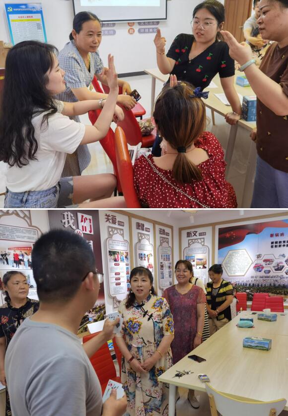 中級社工師王錦山先通過一個簡短的視頻,讓家長認識到情商是由自我意識、控制情緒、自我激勵、認知他人情緒和處理相互關(guān)系這五種特征組成,讓家長科學了解到情商的范圍。隨后,老師給家長們科普了學齡前孩子的情緒發(fā)展過程,以及具體事件中培養(yǎng)孩子情商的小方法,強調(diào)情商應(yīng)當重點在人機互動中培養(yǎng)。活動結(jié)束時,老師帶家長們做了簡單的小游戲,在趣味橫生的游戲里,大家再次鞏固了知識點。