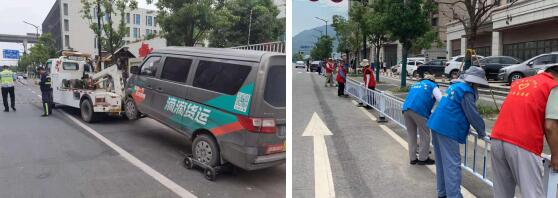 早在接到群眾反映時,石埠橋村社區(qū)和交警部門就開始了實(shí)地排摸,在節(jié)假日、上下班等車輛擁堵時段勸離違規(guī)停車人員,將“僵尸車”、違停車等登記在案。工作人員也發(fā)現(xiàn),因?yàn)槁愤呎系K原因,非機(jī)動車常常行駛到機(jī)動車道,左突右行中安全事故也曾有發(fā)生。在棲霞街道城管科大力支持下,石埠橋村社區(qū)聯(lián)合交警部門展開了路邊車輛清拖工作,在城市管理志愿者、社區(qū)平安志愿者及基干民兵的共同協(xié)助下,利用最短的時間,安裝了街道城管科提供的非機(jī)動車道隔離欄,擁堵的路面瞬間恢復(fù)了寬闊通暢,保障了附近居民的出行安全。騎著電動自行車路過的王阿姨看到隔離欄,開心地說:“這下好了,之前騎車都小心翼翼,生怕碰到小轎車,現(xiàn)在安全了,路上也清爽了,這個事做得好,給社區(qū)點(diǎn)贊!”