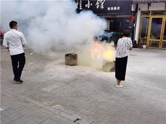 講座結(jié)束后,所有人來到了室外,特勤隊員向大家介紹了消防器材的使用方法和技能,然后進行了消防實戰(zhàn)演練,現(xiàn)場準(zhǔn)備了兩個滅火桶及16具滅火器,商戶們在消防隊員的指導(dǎo)下,全部完成了滅火訓(xùn)練。