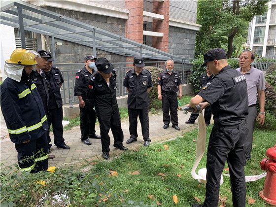 最后,結(jié)合小區(qū)微型消防站的配置要求,組織了微型消防站的物業(yè)消防站隊員現(xiàn)場實操了消防水帶、槍頭的拆卸組裝使用及消防防護服的穿著方法,在特勤隊員的指導(dǎo)下,微型消防站隊員們完成了實操動作。