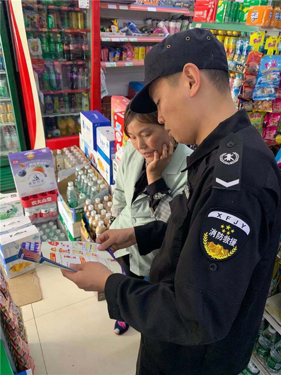 活動(dòng)中,堯安社區(qū)聯(lián)合消防特勤深入轄區(qū)超市等人員密集場(chǎng)所,向商鋪宣傳安全用電、用火、用氣知識(shí) , 重點(diǎn)檢查了消防安全器材是否有損壞、是否過(guò)期,電線是否亂拉亂接、老化破裂,液化氣罐使用是否存在安全隱患,貨物的堆放是否符合消防安全規(guī)定等,并對(duì)發(fā)現(xiàn)的隱患,責(zé)令負(fù)責(zé)人及時(shí)采取整改措施,重點(diǎn)提醒轄區(qū)營(yíng)業(yè)場(chǎng)所業(yè)主,形成人走斷電的良好習(xí)慣,高度重視消防安全。