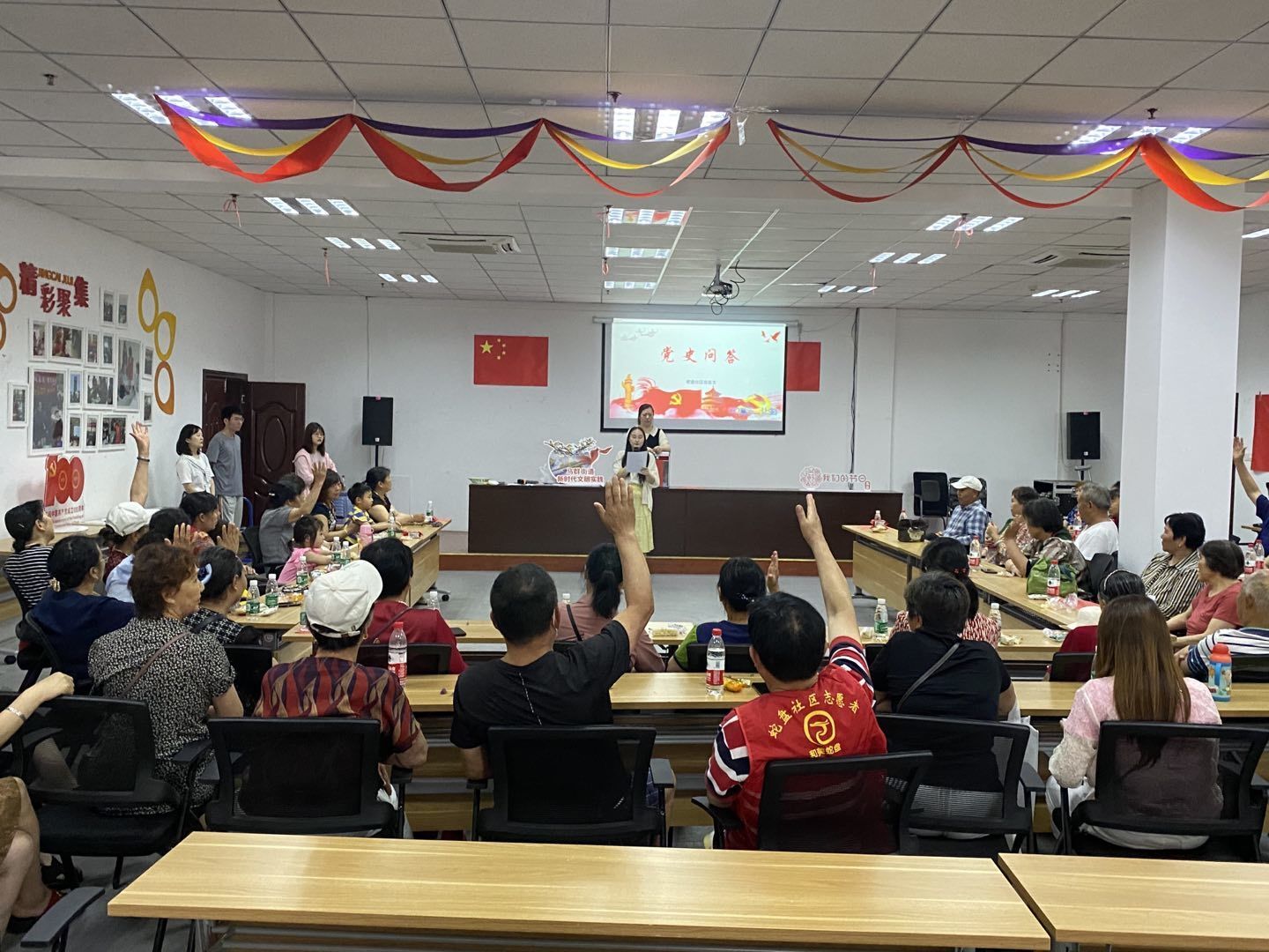 活動中,破冰游戲——擊鼓傳花打破陌生感,讓居民迅速熟悉起來,黨史故事分享、黨史問答讓大家在輕松的氛圍中學(xué)習(xí)黨史知識,堅定感黨恩、聽黨話、跟黨走的信念,大家情不自禁地唱起《東方紅》、《南泥灣》、《唱支山歌給黨聽》等紅歌。隨后,大家編起鴨蛋絡(luò)子,互相祝愿端午安康。