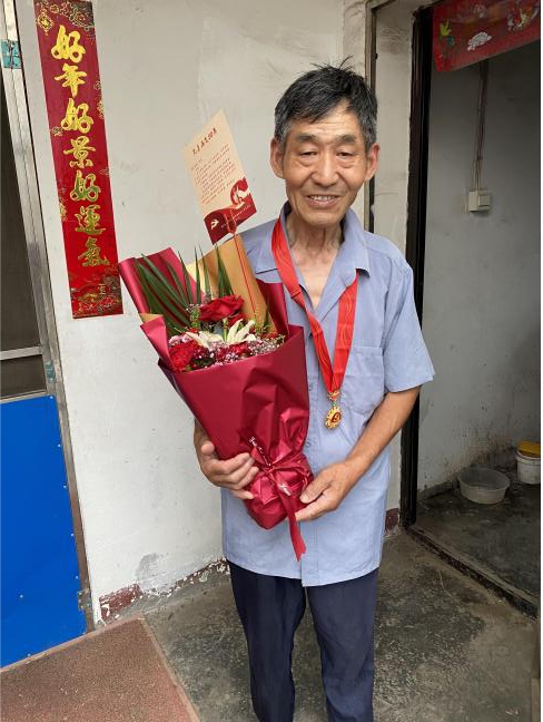 為慶祝中國(guó)共產(chǎn)黨成立100周年,厚植知黨史、聽黨話、跟黨走的愛黨愛國(guó)情懷,2021年6月26日,江寧區(qū)湖熟街道晶明村組織開展了“老兵永遠(yuǎn)跟黨走”的走訪活動(dòng),為退役軍人老黨員送上“光榮在黨50年”紀(jì)念章。