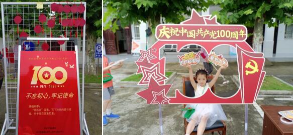 另一邊,社區(qū)除了文藝匯演還安排了四個主題服務。“大家手里拿著的是黨旗,紅色的旗面上綴著金黃色的黨徽,紅色象征了黨的革命歷程、黃色的錘頭和鐮刀代表了工人和農(nóng)民的勞動工具,也象征了我們黨是中國工人階級的先鋒隊……”在手工板塊,志愿者們向孩子們講述了黨旗的含義、組織觀看中國共產(chǎn)黨人的先進事跡,孩子們都聽得津津有味。接著,孩子們在志愿者的講解下繪制手工帆布包,看到孩子們一個個認真的樣子,家長們也紛紛加入,和孩子們一起制作,大家把自己對黨的忠誠和感情充分融入到制作過程中。制作完成后,孩子們進行合照留念,臉上洋溢著滿滿的驕傲與自豪。此外,還有黨史知識競賽、百年照相館及微感言等板塊,現(xiàn)場一片其樂融融的景象。