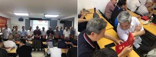 接著,為社區(qū)黨齡在50年老黨員頒發(fā)了“光榮在黨50年”紀(jì)念章,并對(duì)老黨員們多年在組織工作中所作出的貢獻(xiàn)表達(dá)了崇高敬意。當(dāng)沉甸甸的紀(jì)念章,遞到老黨員面前時(shí),老黨員激動(dòng)的表示:“這是對(duì)我們一種肯定,也是一種贊揚(yáng),更是一種榮譽(yù)。”在臺(tái)下,老黨員高興的拿著紀(jì)念章,看來(lái)看去,神情十分激動(dòng)。