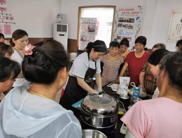 培訓(xùn)分為理論教授與實(shí)踐操作兩部分。老師先以講座的形式為婦女們科普了甜品制作的注意事項(xiàng),生動詳實(shí)的分條敘述逐漸理清婦女們的思路,后階段,老師帶婦女們親自上手體驗(yàn)制作實(shí)感,總結(jié)制作經(jīng)驗(yàn)。無論老師還是婦女們,都對培訓(xùn)活動投入了極大的熱情。