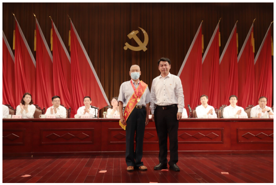 劉書記為老黨員代表頒發(fā)“光榮在黨50年”紀念章