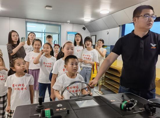 現(xiàn)場,來自江蘇海事職業(yè)技術(shù)學(xué)院的兩名老師帶領(lǐng)青少年走進(jìn)航海模擬駕駛艙,了解船員們的日常工作內(nèi)容,奇妙的航海體驗(yàn)勾起了青少年對航海的一絲向往。