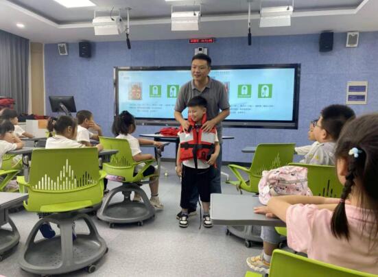 航海路上,安全第一。安全教育課堂上,老師強(qiáng)調(diào)了穿戴兒童救生衣的重要性,現(xiàn)場教大家正確穿戴救生衣的方法,對于有疑問的小朋友,老師都一一予以解答。