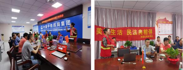 7月9日,南京市棲霞區(qū)燕子磯街道燕子磯社區(qū)司法服務(wù)中心走進(jìn)轄區(qū)在建工地中鐵四局項(xiàng)目部舉行“普法宣傳進(jìn)工地,法律意識入人心”主題宣傳活動(dòng),項(xiàng)目負(fù)責(zé)人、民工代表、工地網(wǎng)格員共同參加活動(dòng)。