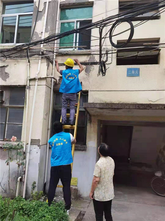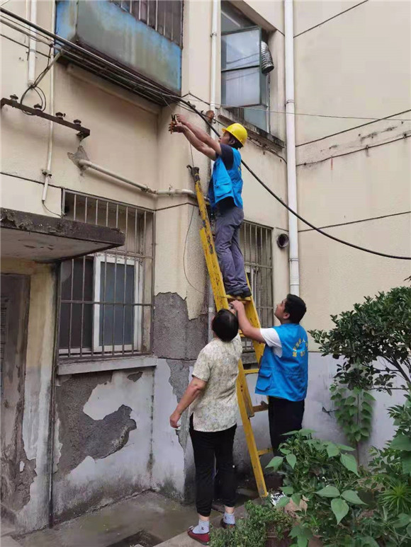 志愿者們搬來長梯,采取空中作業(yè)的方式對線纜進行剪除、捆綁與美化等工作。居民們說道:“以前每次路過這些地方都得避著走,生怕漏電,現(xiàn)在好了,再也不用擔(dān)心這些安全隱患了。”