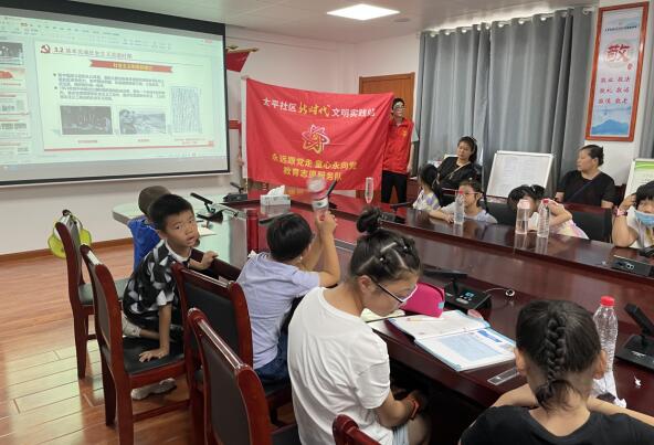 7月12日,該社區(qū)暑假托管班正式開班,活動現(xiàn)場,社區(qū)志愿者們?yōu)楹⒆觽冎v解課堂相關(guān)紀律和安全規(guī)則,幫助孩子們度過一個有秩序、有收獲的暑假。