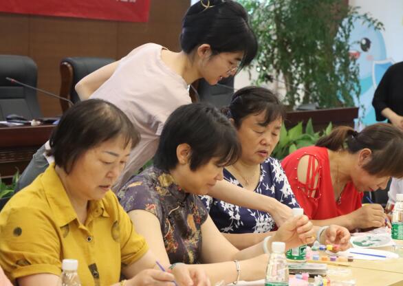 隨后,社區(qū)志愿者為大家介紹了團(tuán)扇的文化背景及制作方法,從構(gòu)圖到制作,大家都有條不紊的進(jìn)行,時(shí)不時(shí)互相交流,氣氛十分的活躍。經(jīng)過半小時(shí)的努力,花朵、蝴蝶、綠葉在團(tuán)扇上展現(xiàn)出它們獨(dú)特的風(fēng)采,原本空空如也的團(tuán)扇瞬間花團(tuán)錦簇,漂亮極了。一幅幅充滿創(chuàng)意的團(tuán)扇作品躍然扇上,素雅的團(tuán)扇在大家手中重新煥發(fā)生機(jī),被賦予與眾不同的意義?;顒?dòng)結(jié)束后,大家拿著自己制作的成品,紛紛合影留念。
