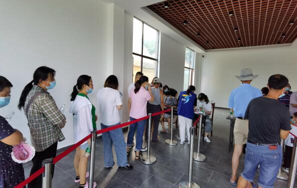 “大家都不要著急,今天我們不休息,排到100后的村民朋友可以先去吃午飯,下午再過來,今天哪怕是到凌晨我們也會一次性檢測完,大家不要著急。”鶴齡社區(qū)網(wǎng)格員拿著手持?jǐn)U音器,不斷向尚不了解情況的村民介紹流程和安排。烈日炎炎,有的工作人員在烈日下做好居民排隊檢測的秩序維穩(wěn)工作;有的網(wǎng)格員為排隊等候村民發(fā)放礦泉水、加裝空調(diào)電風(fēng)扇,為醫(yī)護人員和村民群眾做好防暑降溫工作;有的黨員干部在大廳里面負(fù)責(zé)登記人員信息,10個人一組,收集身份證,做好二維碼登記,再負(fù)責(zé)帶領(lǐng)這組人員到醫(yī)生處采集核酸,讓全員核酸采集工作有條不紊地進行。
