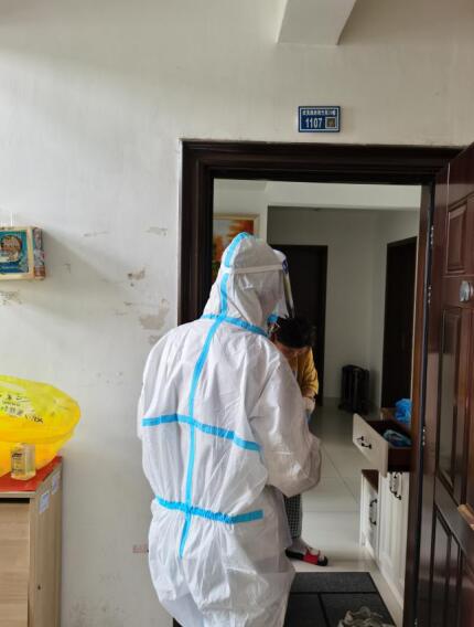 兩名醫(yī)護(hù)人員帶著檢測(cè)試劑敲開了老人的家門,登記信息、消毒、核酸檢測(cè)采樣,整個(gè)流程老人及家人十分配合,很快就完成了老人的核酸檢測(cè)采樣工作。老人的家人將醫(yī)護(hù)人員送出家門,并且表示給醫(yī)護(hù)人員工作添了麻煩,特別感謝他們能夠到家里來做核酸檢測(cè),讓老人更安心。
