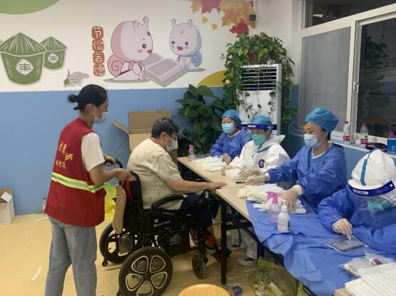 根據(jù)南京市開展全市全員核酸檢測通告要求,南京市棲霞區(qū)燕子磯街道電瓷社區(qū)于7月21日迅即啟動社區(qū)全員檢測工作。為了方便行動不便的特殊人群,電瓷社區(qū)殘協(xié)安排志愿者幫助行動不便的居民進(jìn)行核酸登記,護(hù)送他們到核酸檢測點(diǎn)檢測。