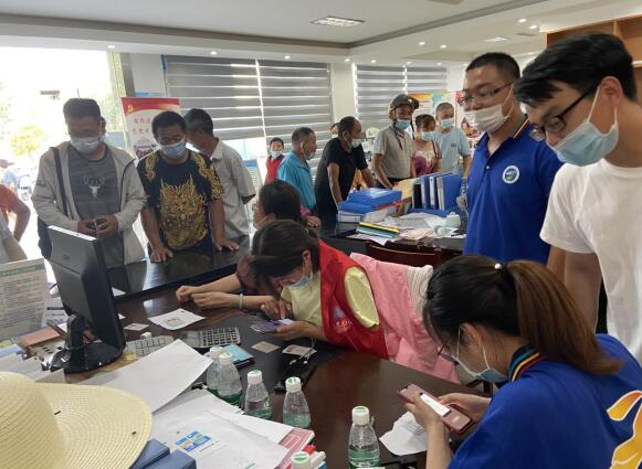 登記信息、協(xié)調(diào)現(xiàn)場秩序、帶隊入場檢測……在核酸檢測現(xiàn)場,社區(qū)網(wǎng)格員與志愿者們互相配合,穿梭于長長的隊伍之間,進(jìn)行著一系列緊張而有序的工作。由于天氣炎熱,前來采樣的人數(shù)眾多,為了避免村民們中暑,網(wǎng)格員們便盡量安排村民進(jìn)入室內(nèi)或者樹蔭下等待,并為村民們分發(fā)了礦泉水、人丹等物資,以防村民們在炎熱的天氣里中暑。