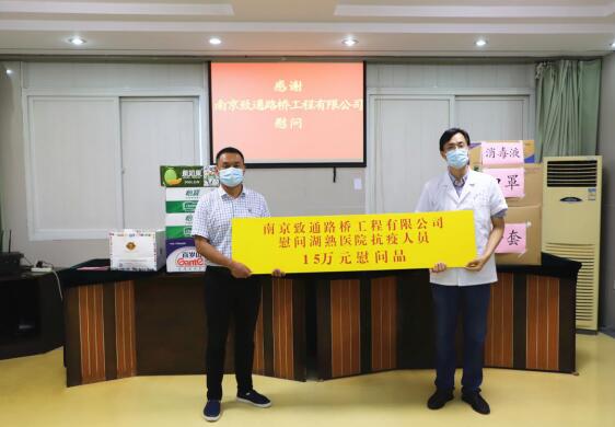 “醫(yī)護人員不分晝夜,堅守在一線,為了人民群眾的安危不求回報、無私奉獻的付出著,令人感動不已。在抗擊疫情的關(guān)鍵時刻,身為企業(yè)家,應(yīng)該勇于承擔(dān)社會責(zé)任,力所能及為疫情防控提供幫助”慰問現(xiàn)場,總經(jīng)理笪囯慶說道。