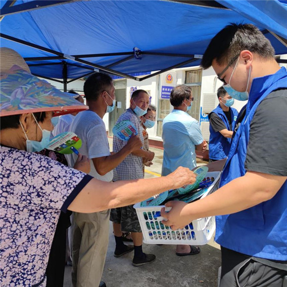 在這次的疫情防控工作中,焦敬鵬同志積極組織轄區(qū)內(nèi)志愿者,時(shí)刻沖在疫情防控第一線。20日晚,他連續(xù)撥打了40多個(gè)電話,摸排了轄區(qū)內(nèi)10名在祿口機(jī)場(chǎng)工作的群眾,并得到詳細(xì)信息。因時(shí)間緊迫,21日一大早社區(qū)門口就排起了核酸檢測(cè)的長(zhǎng)隊(duì),焦敬鵬考慮到天氣炎熱,為避免群眾中暑,立刻上前發(fā)放疫情防控宣傳小扇子,服務(wù)的同時(shí)不忘宣傳。
