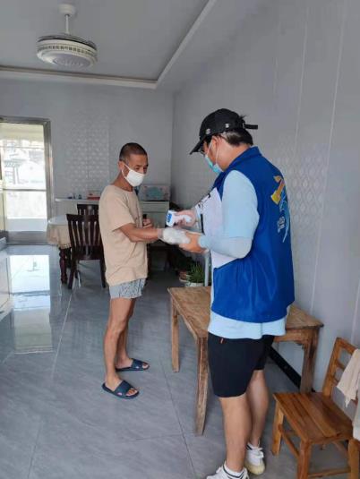 和平村網格員帶著醫(yī)護人員前往居家觀察人員家中,現(xiàn)場,網格員幫忙填寫錄入居家觀察人員身份信息,醫(yī)護人員在一旁負責核酸采樣。在為他們測量體溫時,不忘叮囑他們與外來人員接觸時要戴好口罩,還為每人準備了一包口罩,防止他們口罩數量不足。網格員考慮到他們一個人在家隔離,有很多不便之處,臨走時熱情地對居家觀察人員說:“居家觀察期間,你要是什么想買什么,盡管打電話或者微信消息告訴我,我一定幫你帶過來。只要有需要,我們一定滿足。”