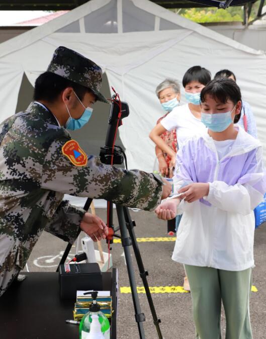 檢測現(xiàn)場,這些退役軍人志愿者,雖然沒有穿軍裝,但始終堅(jiān)守始終,沖鋒在前,發(fā)揮著人民子弟兵永遠(yuǎn)為人民的風(fēng)范,保持著“退役不褪色”軍人本色,積極維持現(xiàn)場秩序,引導(dǎo)群眾有序進(jìn)行排隊(duì),為居民量體溫,發(fā)放號碼,確保群眾保持安全距離,同時,遇到行動不便的老年人,退役軍人志愿者立即上前攙扶,為群眾積極解決疑難問題,他們始終堅(jiān)守各自崗位,為社區(qū)核酸檢測工作,貢獻(xiàn)出自己的一份力。