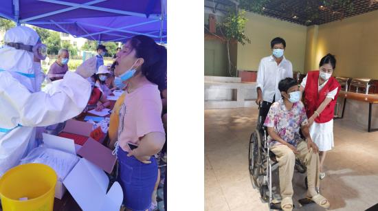 社區(qū)工作者,網(wǎng)格員,志愿者在檢測點24小時隨時待命耐心疏解,采樣的同時,還為村民講解核酸檢測的重要性和個人防護注意事項,針對殘疾人,年紀(jì)大出行不便的老人醫(yī)護工作者入戶上門檢測采集。