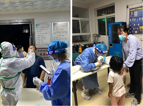 期間,周崗社區(qū)衛(wèi)生院副院長,業(yè)緒根帶領(lǐng)醫(yī)護(hù)人員在機(jī)構(gòu)為工作人員核酸采樣間隙,雖然都帶著口罩穿著密不透風(fēng)的防護(hù)服,但是依然被機(jī)構(gòu)細(xì)心的工作人看出來面部十分憔悴,眼睛里噙著著血絲,令人心疼不已。在此之前,他已經(jīng)將近6天不眠不休,從清晨到黑夜,從醫(yī)務(wù)室到每個(gè)群眾居家隔離點(diǎn),一刻也為停歇,即便是身著密不透氣的防護(hù)服和橡膠手套,任由汗水浸泡他們的身體,在高溫酷暑下,他和他們那一群逆行者們?nèi)匀粓?jiān)守在抗疫第一線,仍然保持著一名共產(chǎn)黨員高昂的防疫斗志。他們絲毫沒有感到辛苦和累,當(dāng)聽到一聲“謝謝”時(shí),他們覺得付出的一切都是值得的,同時(shí)也是值得每個(gè)人去贊美的,在疫情面前勇往直前敢于擔(dān)當(dāng),這就是信仰的力量。在辛苦做完機(jī)構(gòu)所有留守人員的核酸采集之后,業(yè)院長還不忘交代“盡量不出門,特殊時(shí)期,大家務(wù)必都要照顧好自己。”