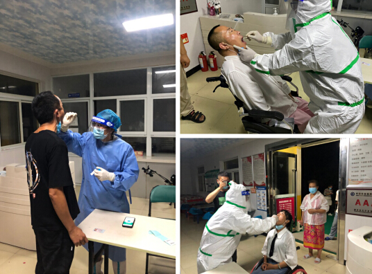 自7月20日南京祿口機(jī)場疫情爆發(fā)以來,為切實(shí)做好新冠肺炎疫情防控工作,全力保障人民群眾身體健康和生命安全。在湖熟街道黨工委、辦事處統(tǒng)一部署下,湖熟街道周崗衛(wèi)生院、周崗社區(qū)、街道殘聯(lián)統(tǒng)一分工協(xié)調(diào)下,嚴(yán)格按照街道防疫指揮部的要求進(jìn)行核酸篩查,本著應(yīng)檢盡檢、不漏一戶、不落一人的原則,醫(yī)護(hù)人員走進(jìn)轄區(qū)殘疾人服務(wù)機(jī)構(gòu)(君子殘疾人之家)以及不能出門的殘疾人家庭,全力開展核酸檢測采樣工作,為殘疾群體的生命健康安全保駕護(hù)航。