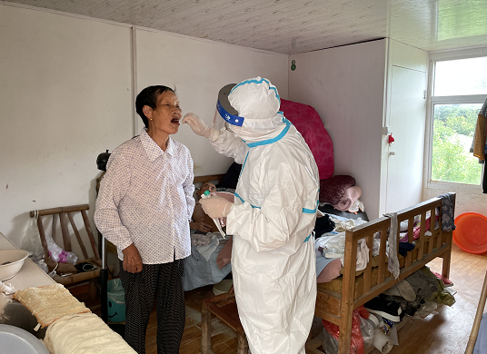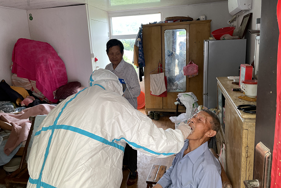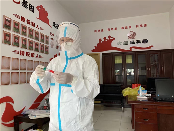 于是她便一直堅(jiān)守醫(yī)院核酸檢測的最前沿,發(fā)揮黨員先鋒模范作用。面對時間緊、任務(wù)重、體量大的轄區(qū)居民一輪、二輪全員核酸檢測的任務(wù),她和年輕的同事一起干,隨叫隨到,下社區(qū)采集、為身體不便的居民上門采集,甚至在奮戰(zhàn)了一夜后年輕同事身體吃不消的情況下第二天主動報(bào)名繼續(xù)掃尾工作,不下社區(qū)采集的時候她還要做好全體醫(yī)務(wù)人員的三天一采的核酸檢測,指導(dǎo)同事做好防護(hù)措施,一遍又一遍的講解防護(hù)服的穿脫,手衛(wèi)生的消毒,她說,我保護(hù)好你們,你們才能更好的為居民服務(wù)。