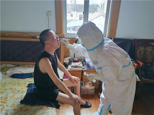 “你好,我們是上門進行核酸檢測的。”為確保全員核酸檢測應檢盡檢、愿檢盡檢、不漏一人、不漏一戶,網(wǎng)格員、村委會干部、醫(yī)護人員主動上門為轄區(qū)內(nèi)的“五包一”人員進行核酸檢測,登記人員信息、撕開棉簽包裝、指導村民張大嘴巴......核酸檢測中,醫(yī)護人員認真幫助村民進行檢測,網(wǎng)格員、村委會干部耐心做好溝通和安撫工作,通過交流及時了解他們的身體健康狀況,切實做到“早發(fā)現(xiàn)、早報告、早診斷、早隔離、早治療”。